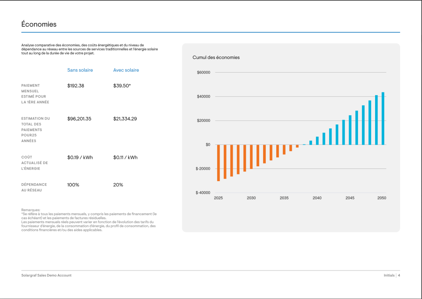 Nous présentons à chaque client un rapport détaillé : économies prévues, coût de l’énergie sur 25 ans et retour sur investissement. Un outil transparent pour décider en toute confiance.